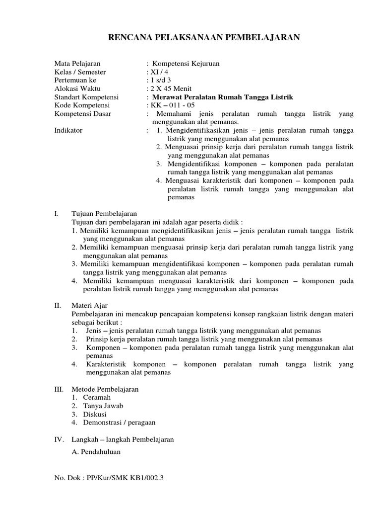 RPP Merawat Peralatan Rumah Tangga Listrik - [DOCX Document]
