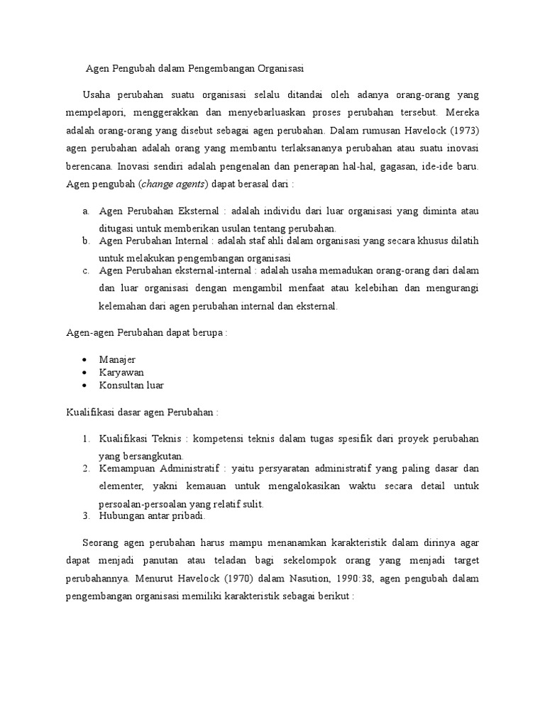 Apakah yang dimaksud Agen Perubahan (Change Agents)? - Manajemen …