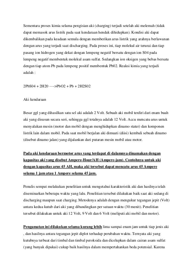 Aki Accu Mempunyai Elektrode Pb Dan Pbo2 Selama Aki Digunakan Atau Bekerja Akan Terjadi Perubahan