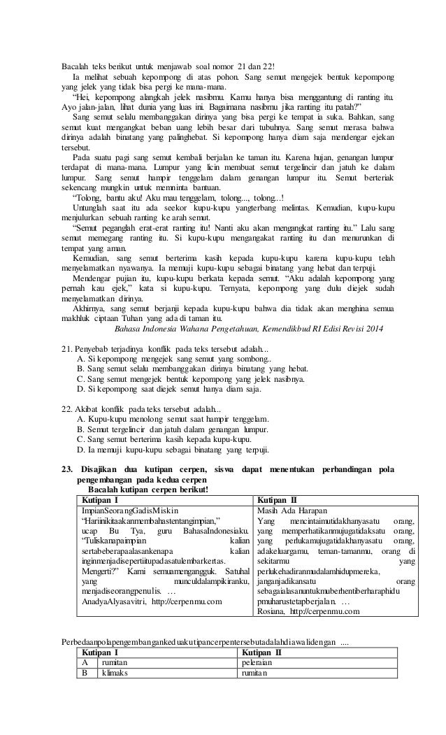 Contoh Soal Simpulan Sebab/Akibat Konflik dalam Cerpen dan Fabel …
