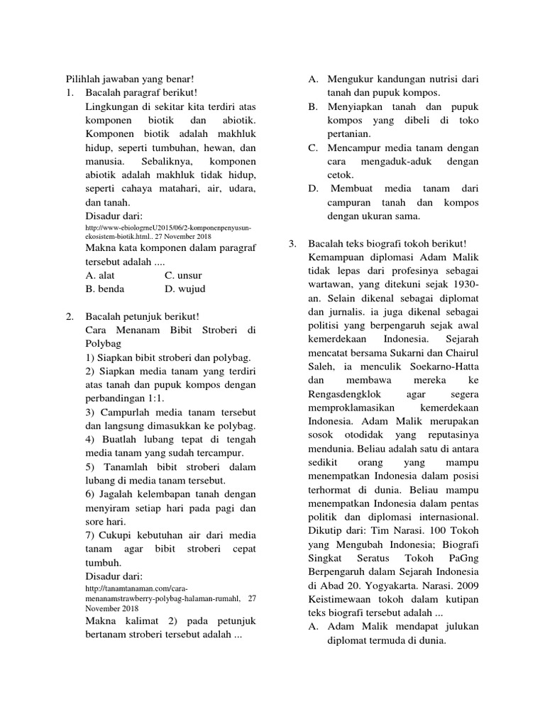 PDF) SOAL LATIHAN UN BHS.INDONESIA 2019.pdf | Jokler Man …