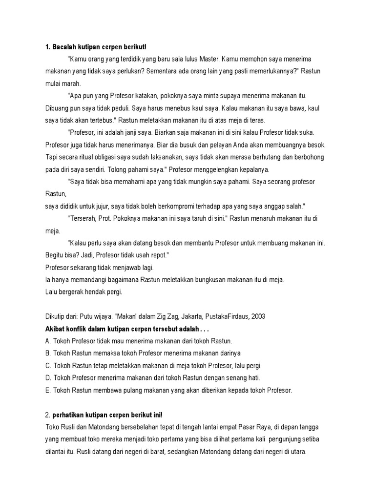 Contoh Soal Simpulan Sebab atau Akibat Konflik dalam Cerpen dan …