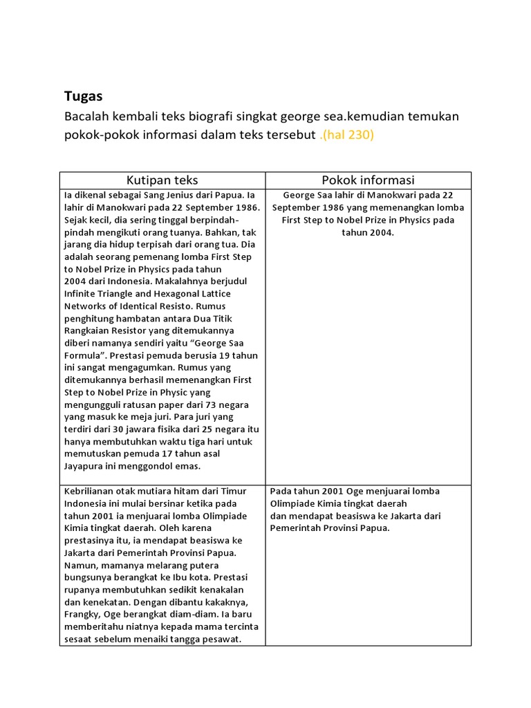 Analisis kaidah kebahasaan teks biografi George Saa, Si Jenius Dari Papua - Brainly.co.id
