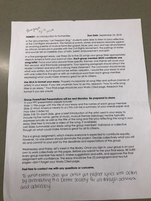 Due Date: September 24, 2018 HUM201: An Introducti… | Chegg.com