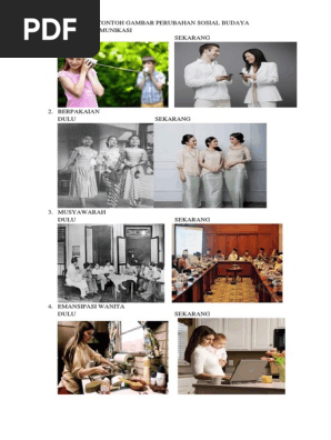 1. Jelaskan perubahan sosial budaya apa yang terjadi pada setiap gambar? 2. Jelaskan pengertian - Brainly.co.id