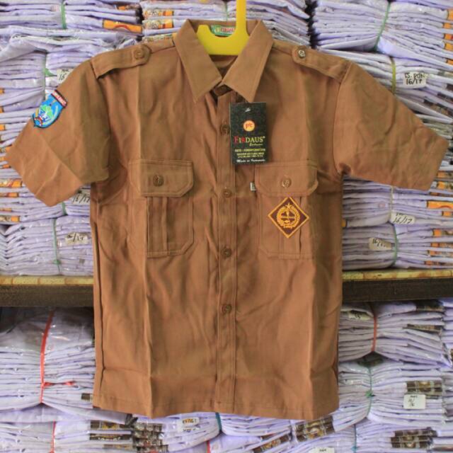 Baju pramuka pendek laki (coklat tua) bahan polyester (khusus daerah sulawesi barat) | Shopee Indonesia