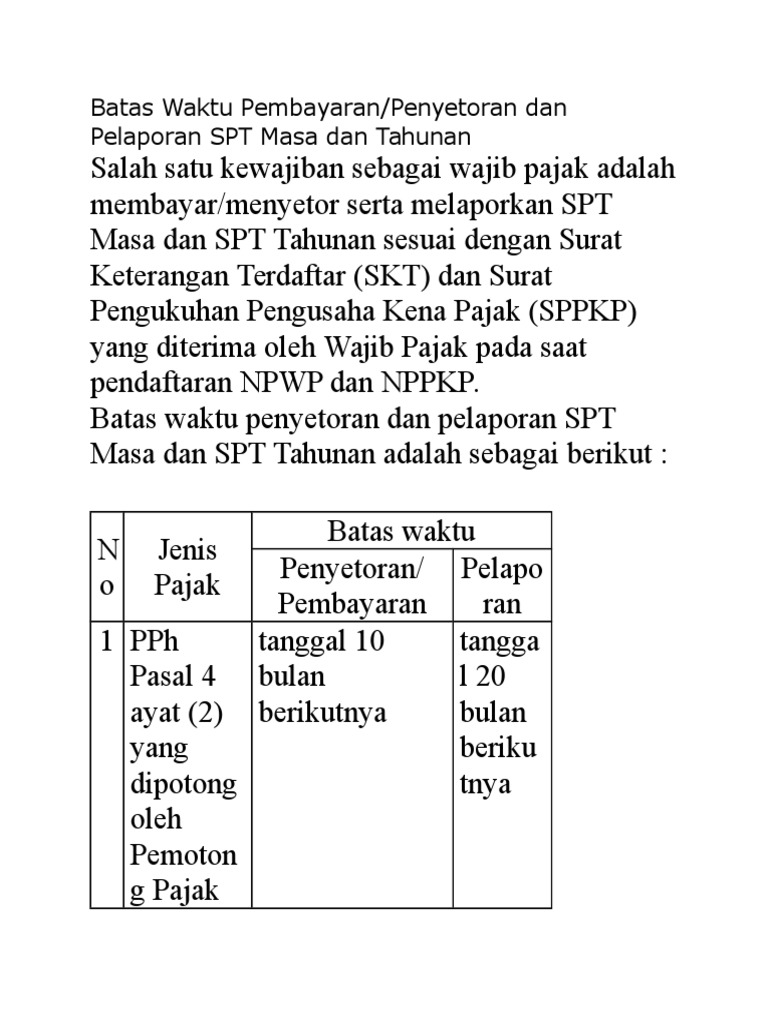 DOC) Batas Waktu Pembayaran/Penyetoran dan Pelaporan SPT Masa dan …