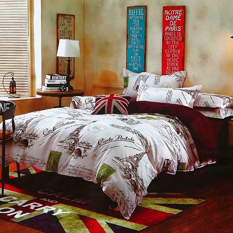 Retro Stamp Series Bedding Set Home Hotel Bed Comforter Sets Paris Tower Bedspread Single Double Microfiber Wedding Duvet Cover - buy at the price of $5.99 in aliexpress.com | imall.com