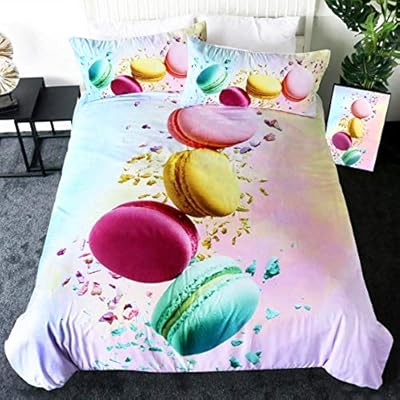 Sleepwish Mint Macaron Bedding 3 Pieces Pink Macaroon Pastel Duvet Cover French Food Paris Themed Girls Bed SetKing: Amazon.sg: Home