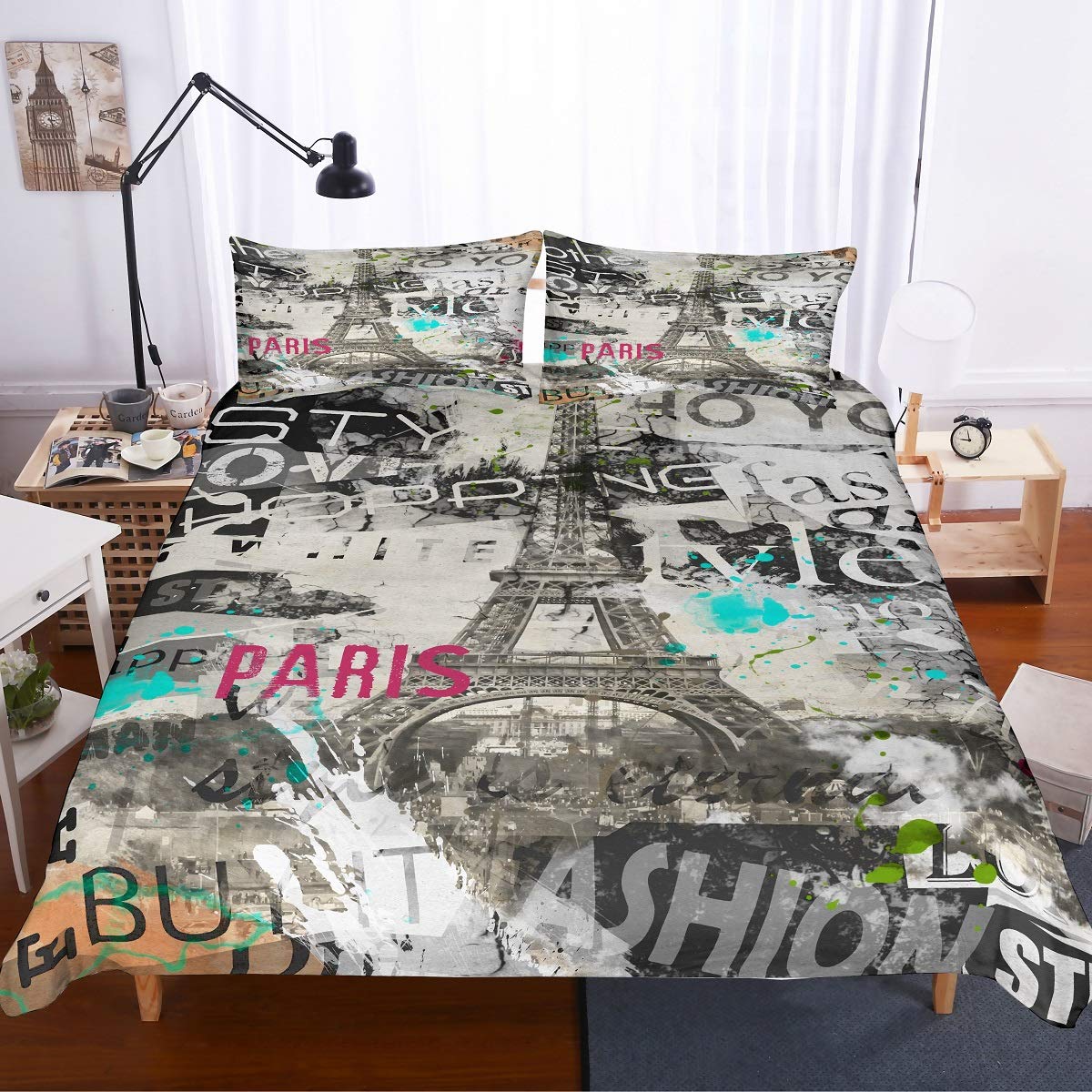PATATINO MIO Retro Eiffel Tower Bedding Set Queen for Teens Vintage Fashion Paris Gray Duvet Cover Set for Boys,Girls and Adults,3 Piece with 2 Pillow Sham,No Comforter: Amazon.sg: Home