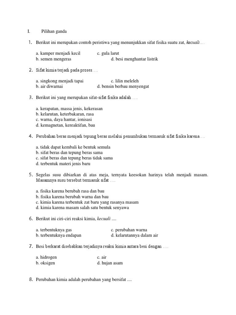 Contoh Soal Perubahan Fisika Dan Kimia Kelas 7 - Bagikan Contoh