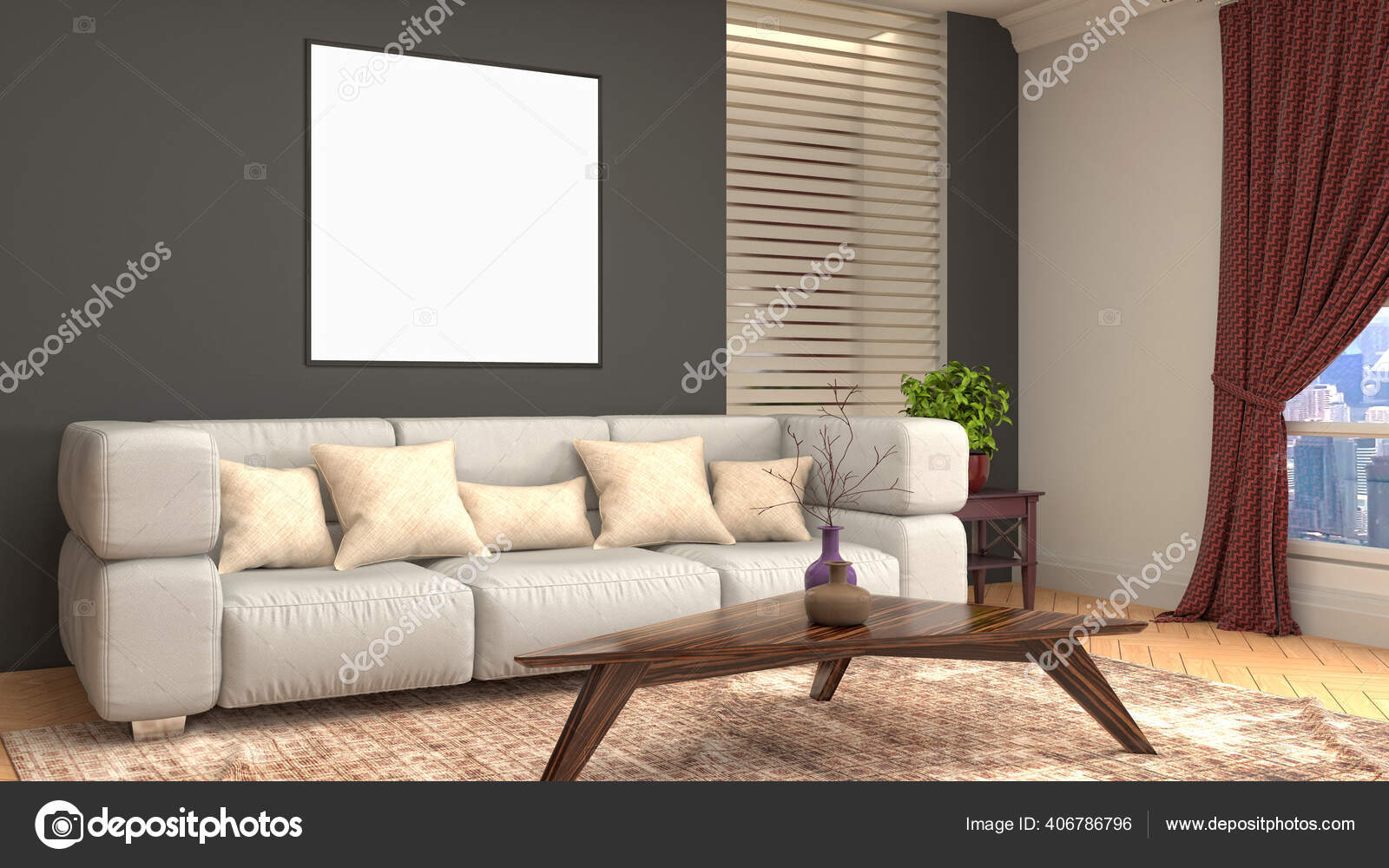 Latar Belakang Interior Ruang Tamu Mewah Modern Dengan Bingkai Poster — Stok Foto Gratis © geerati@gmail.com #265771980
