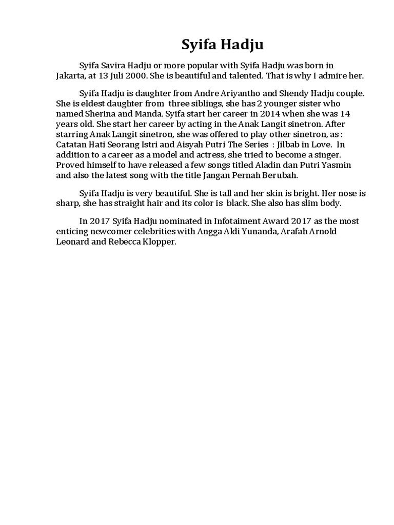 Biografi Syifa Hadju