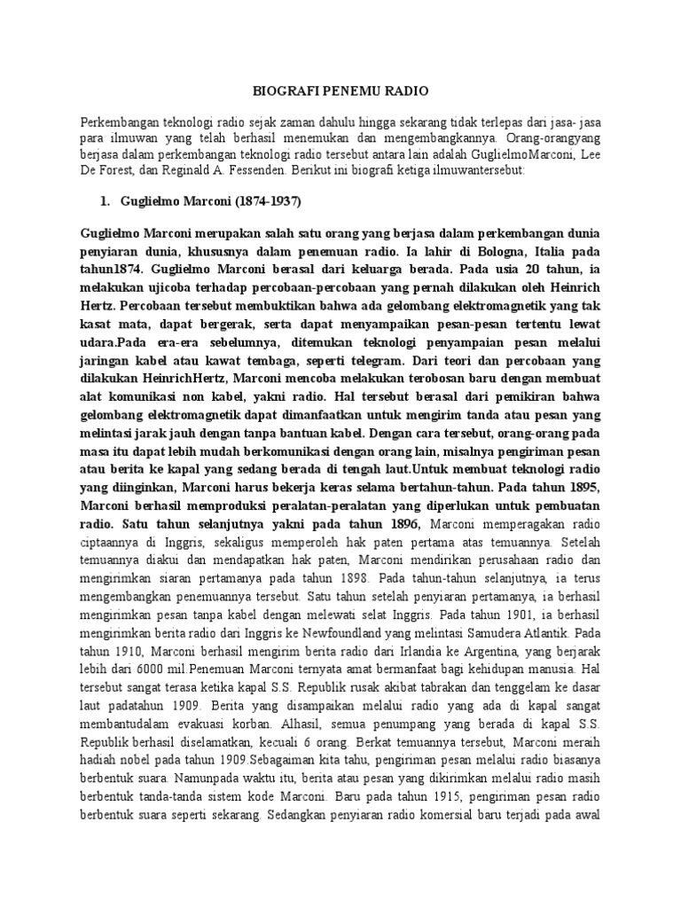 DOC) Biografi Guglielmo Marconi Sang Penemu Radio | fikri eeas - Academia.edu