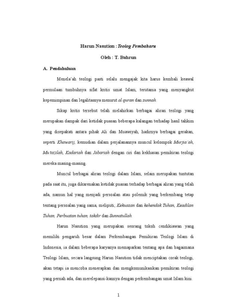 DOC) . Harun Nasution (biografi, pemikiran dan tipologi) | Ardo Hawari - Academia.edu