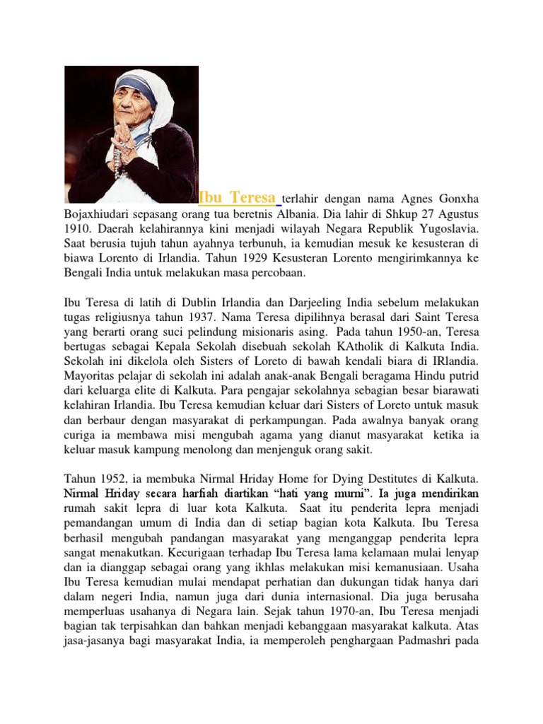 DOC) BIOGRAFI BUNDA TERESA | willy ndihi - Academia.edu
