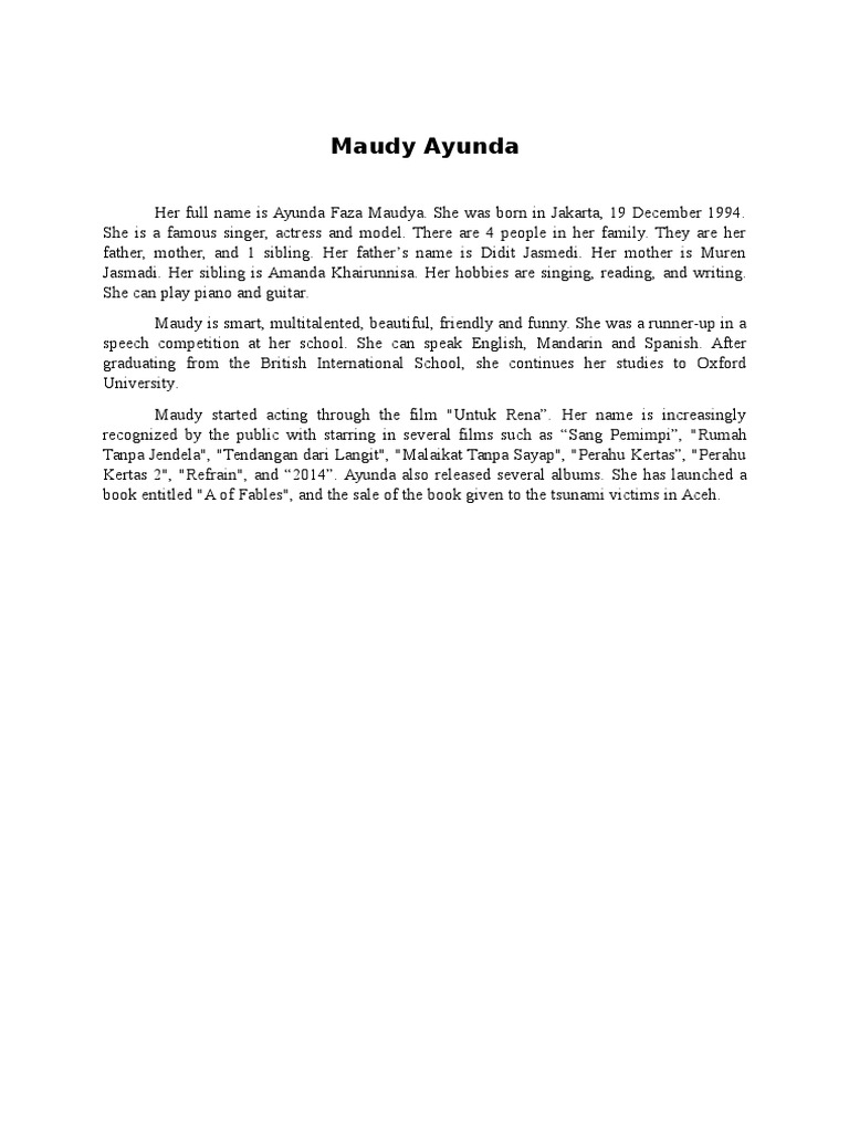 DOC) Biography Maudy Ayunda | Bella Widyanti - Academia.edu