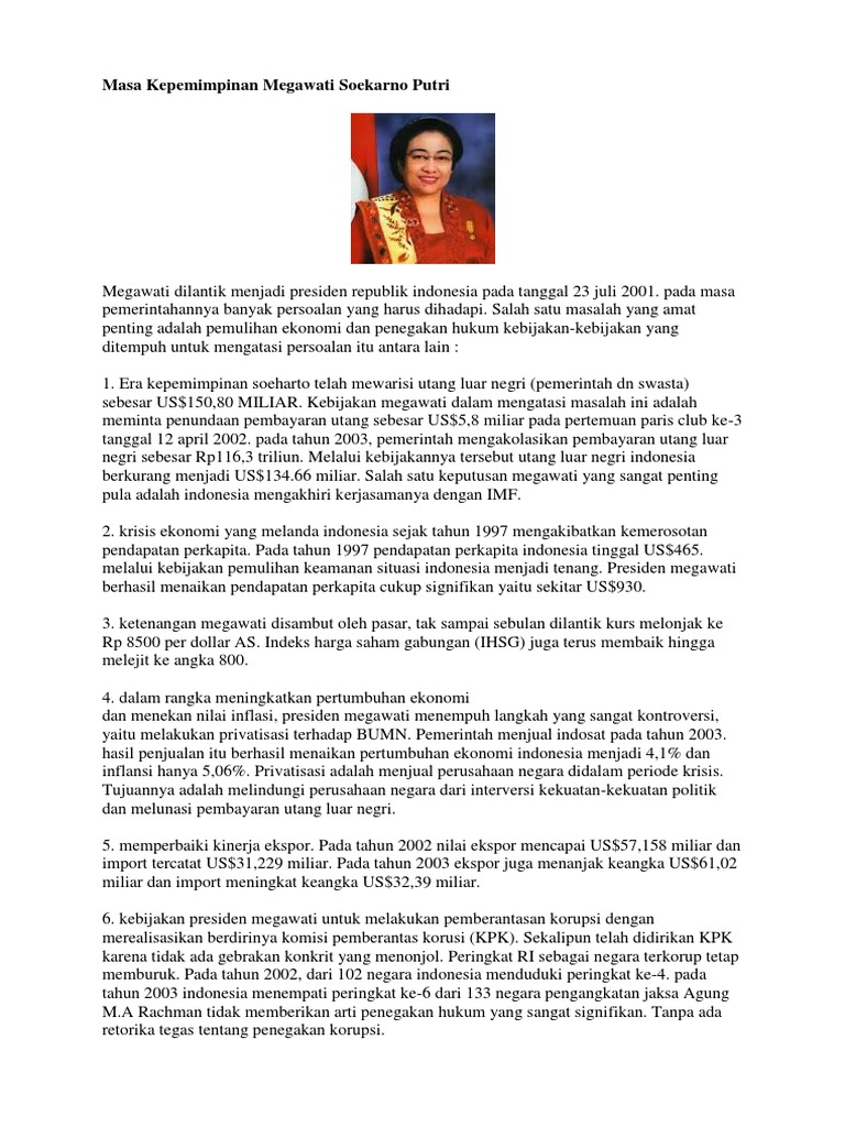 Prestasi Megawati selama 3 tahun memerintah - PENYEMBEAN