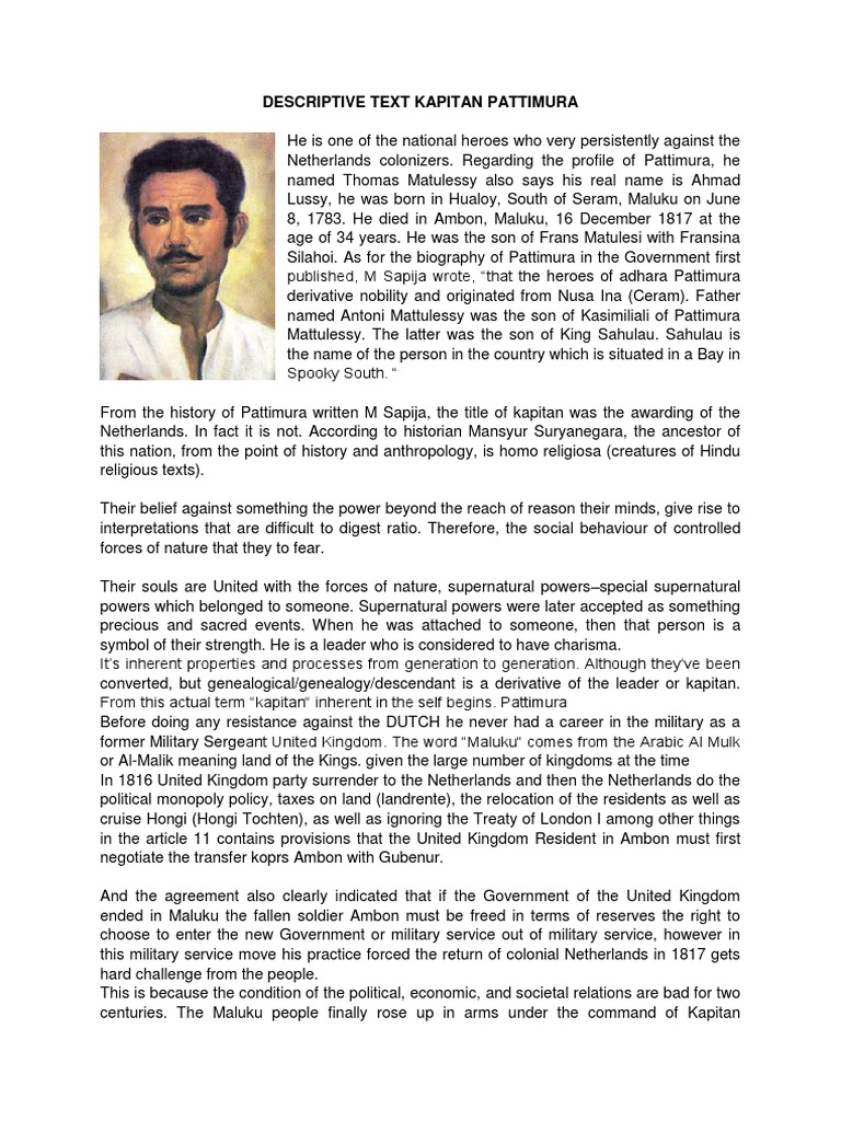 BIOGRAFI PATIMURA BAHASA INGGRIS.docx - NAMA ALDINO DIAN SAPUTRA KELAS XI TKR 2 BIOGRAPHY KAPITAN PATTIMURA Thank you hopefully biography Biography and | Course Hero
