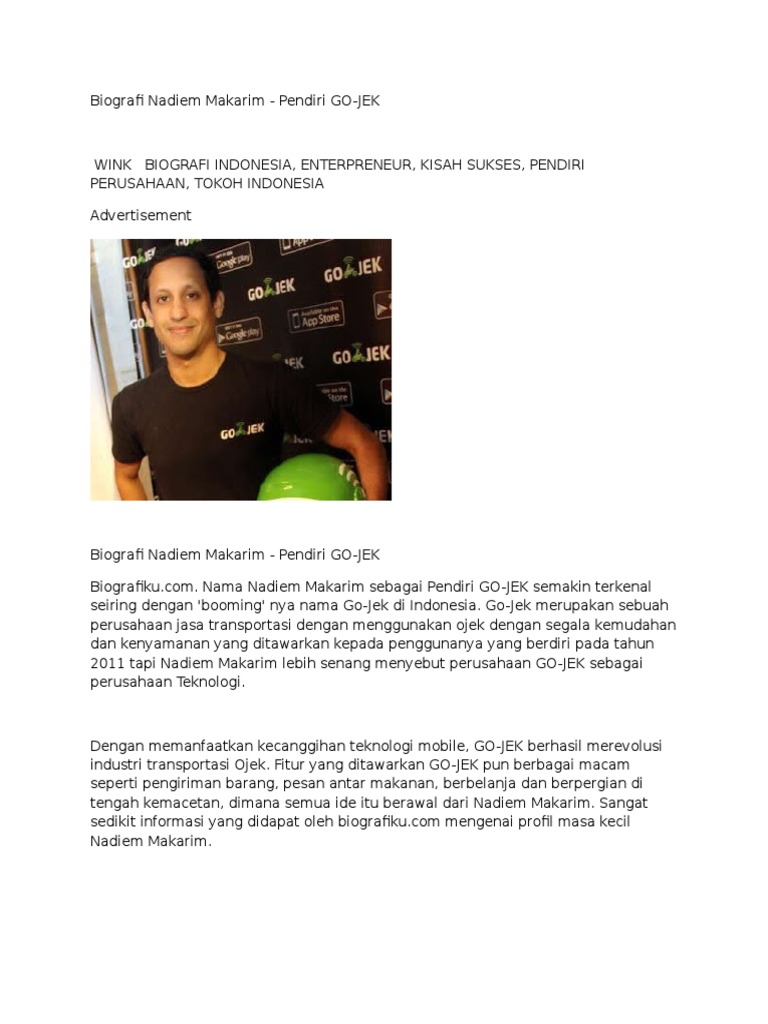 GO-JEK dan Biografi Nadiem Makarim, Sang Pendiri GO-JEK - Article - Plimbi Social Journalism | Plimbi.com