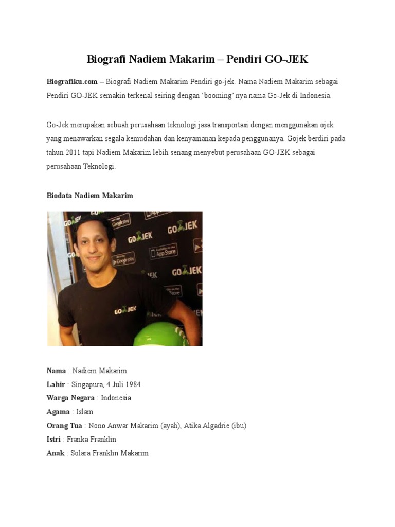 Biografi Nadiem Makarim, Pendiri Gojek Kini Jadi Mendikbud - Biografi.co.id | Biografi Tokoh Indonesia dan Dunia