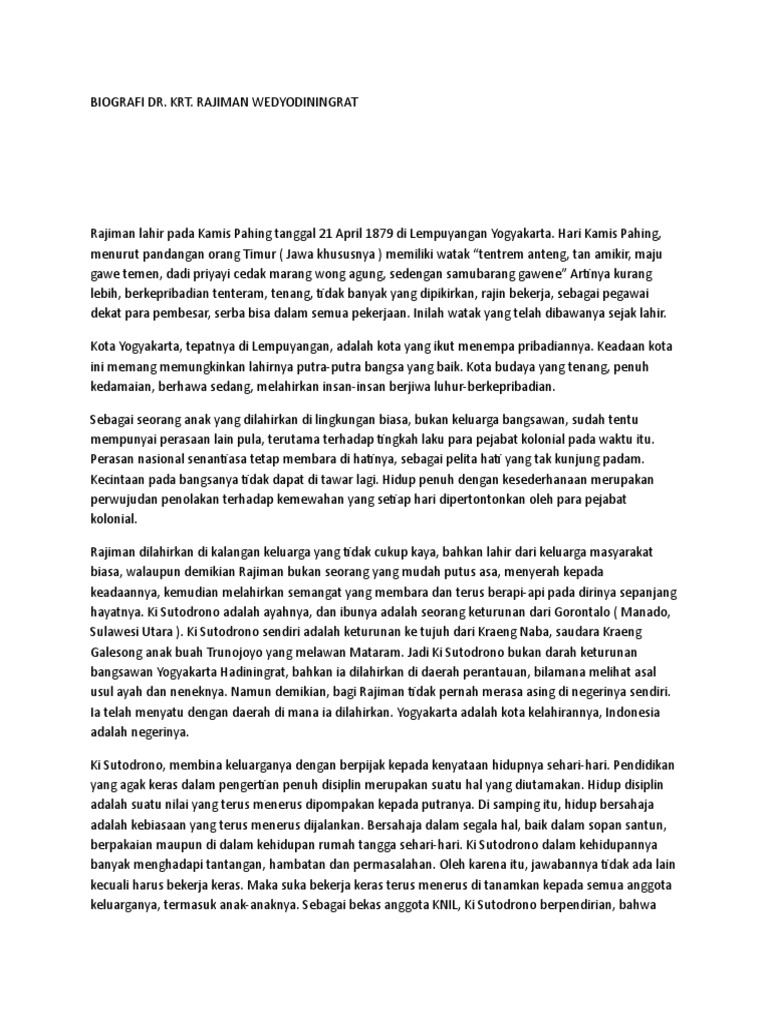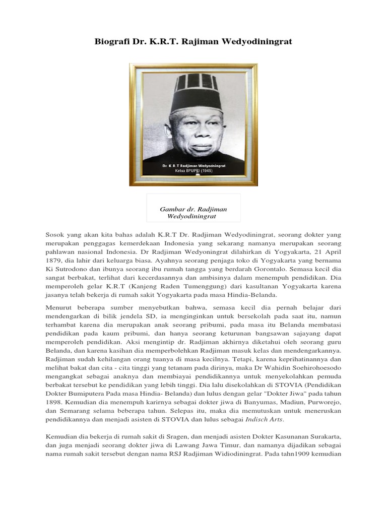 Biografi Dr. Krt radjiman wedyodininhrat