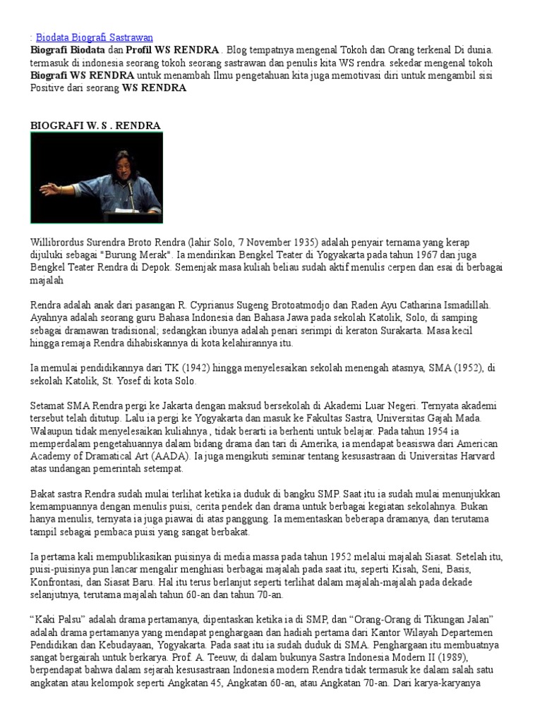 DOC) BIOGRAFI W.S. RENDRA (LATAR SOSIOHISTORIS) | Luthfa Nugraheni - Academia.edu