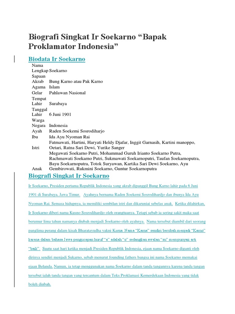 DOC) Biografi Soekarno | Qosihdahlpamadya Tnpbhnpengawet - Academia.edu
