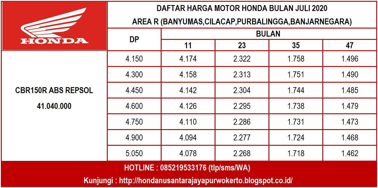 Daftar Harga ~ HONDA NUSANTARA JAYA PURWOKERTO