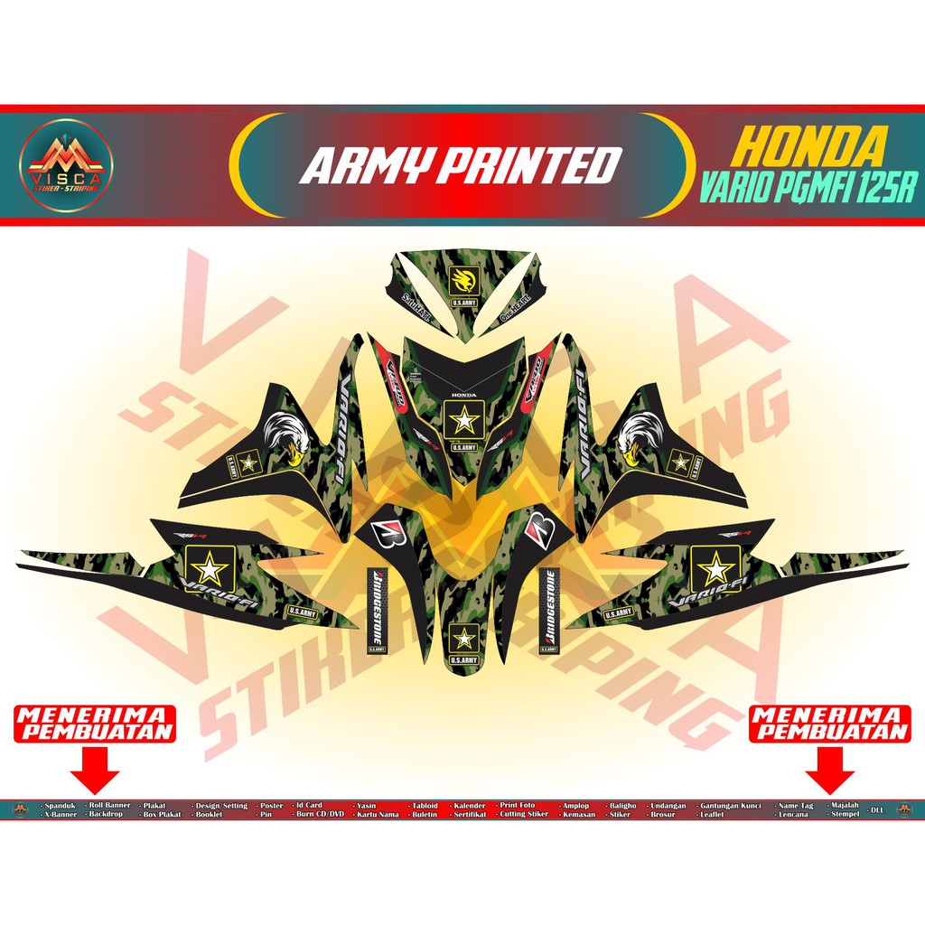 Sticker Motor Vario Techno 125 FI Decal Vario Techno FI Striping Honda Vario 125 FI ARMY PRINTED | Shopee Indonesia