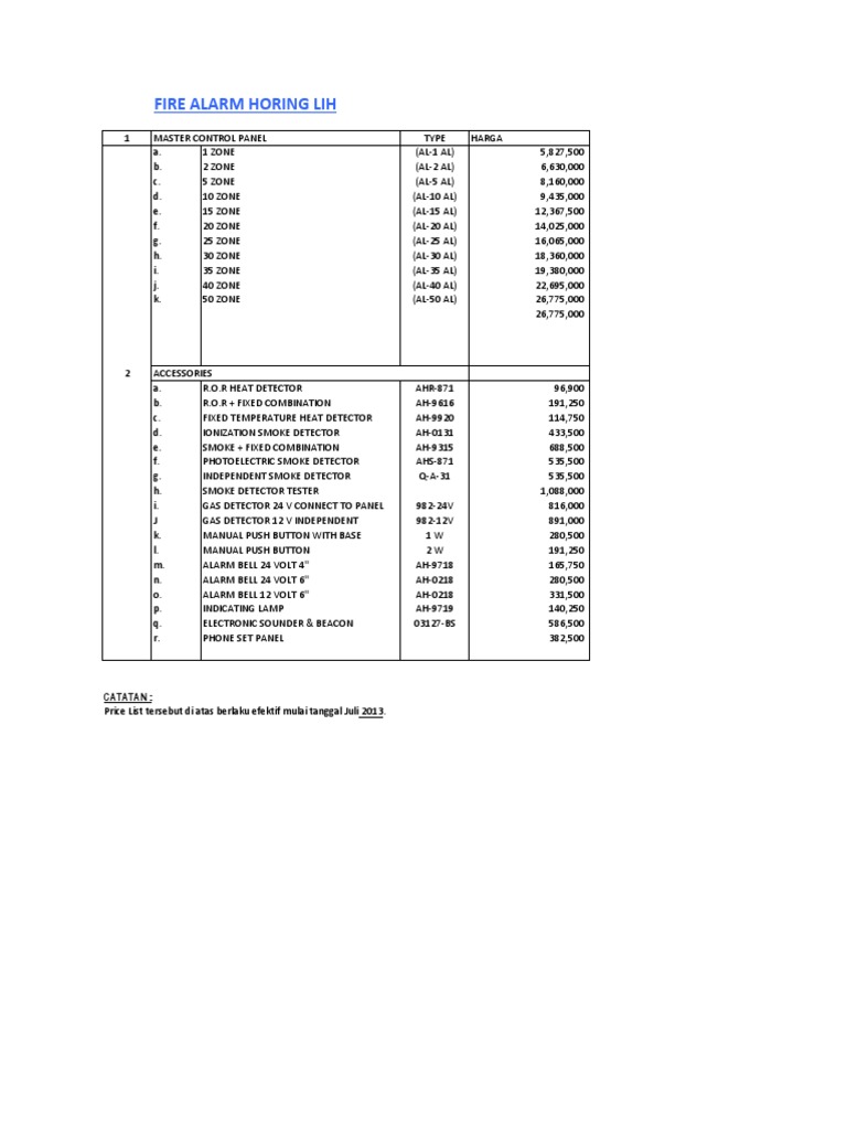 Daftar Harga Fire Alarm Hooseki | Distributor Alat Pemadam Kebakaran dan Alat Safety