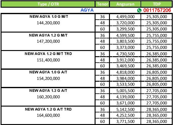 Harga Cicilan Agya 2019