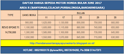 Daftar Harga Sepeda Motor Honda Bulan Juni 2017 Area r (Banyumas,Cilacap,Purbalingga,Banjarnegara) - Gambar