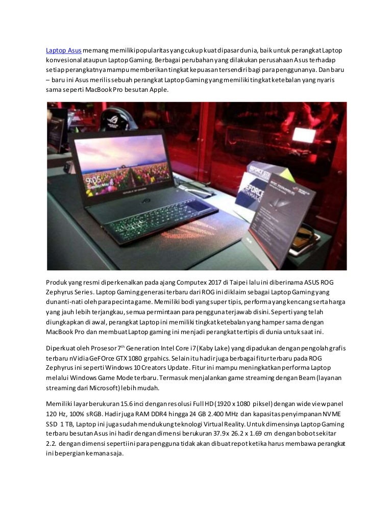 Asus rog zephyrus series, laptop gaming canggih setipis mac book pro