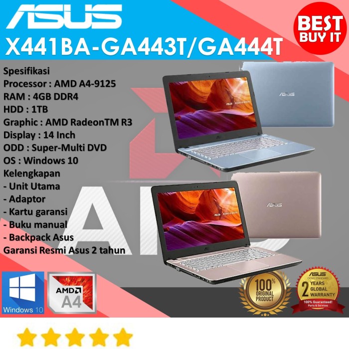 Jual Laptop Asus X441BA-GA443T [Rose Gold]|AMD A4-9125|4GB|1TB|W10|DVD|14" - Kota Makassar - Best-Buy iT | Tokopedia