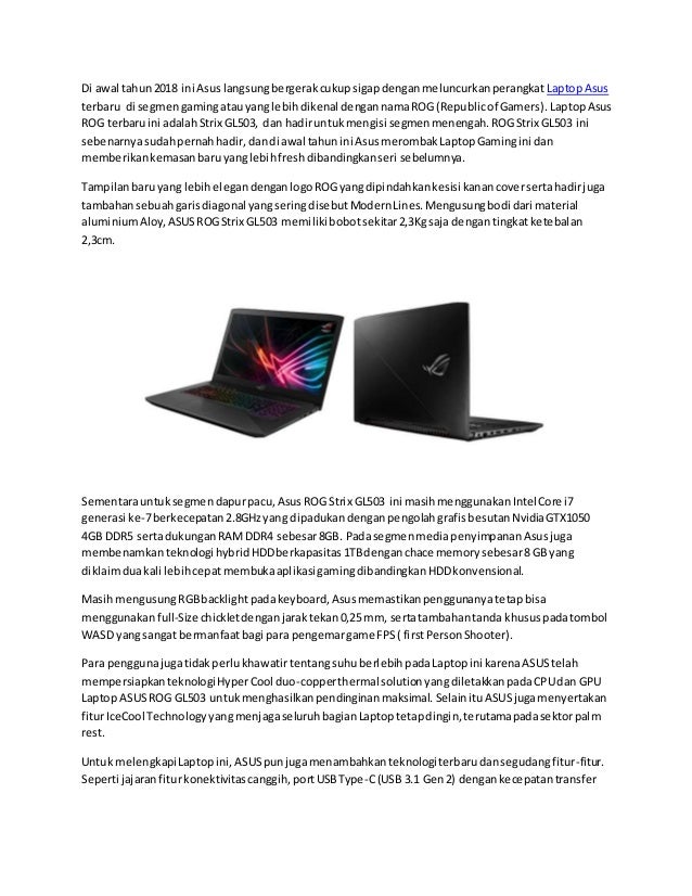 Laptop asus rog strix gl503 dapat perubahan, lebih elegan dan garang