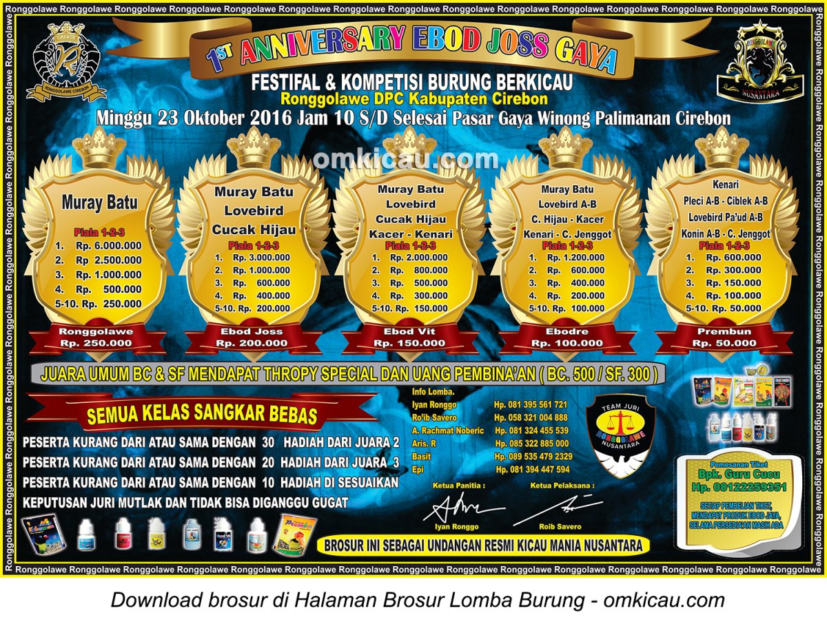 Kicaumania Indonesia on Twitter: “Hadiah utama Rp 6 juta: Gelaran 1st Anniversary Ebod Joss Gaya di Cirebon, 23 Oktober 2016 https://t.co/QyJAoEiidP