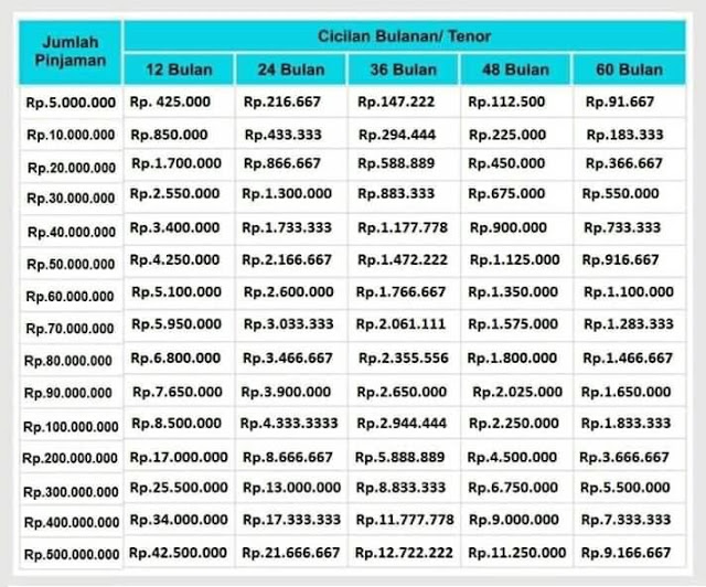 Daftar Tabel Angsuran Kredit Pinjaman Jaminan BPKB Terbaru | Bpkb-Ku