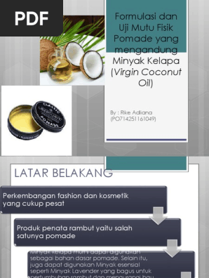 Formulasi dan Uji Mutu Fisik Pomade yang mengandung Minyak Kelapa (Virgin Coconut
