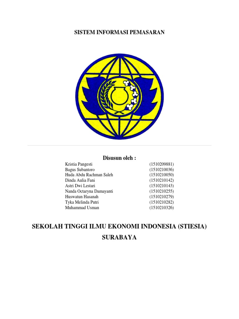 Sistem Informasi Pemasaran: Sekolah Tinggi Ilmu Ekonomi Indonesia (Stiesia) Surabaya