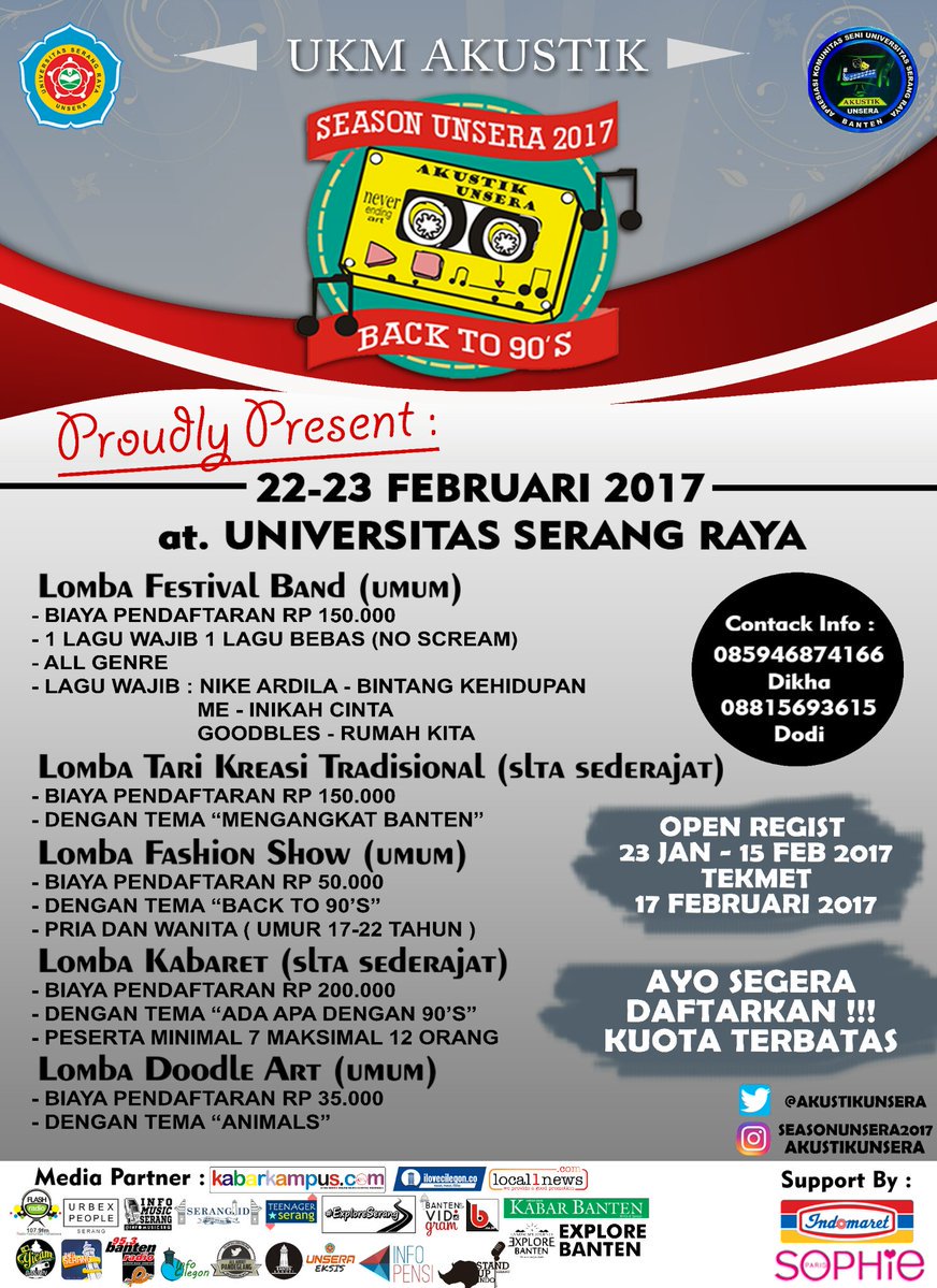 Info Serang on Twitter: “Fest band,doodle art, fashion show, kabaret, tari tradisional.22-23 februari at unsera. Perlombaan sebanten!Stand daftar di lt ground unsera
