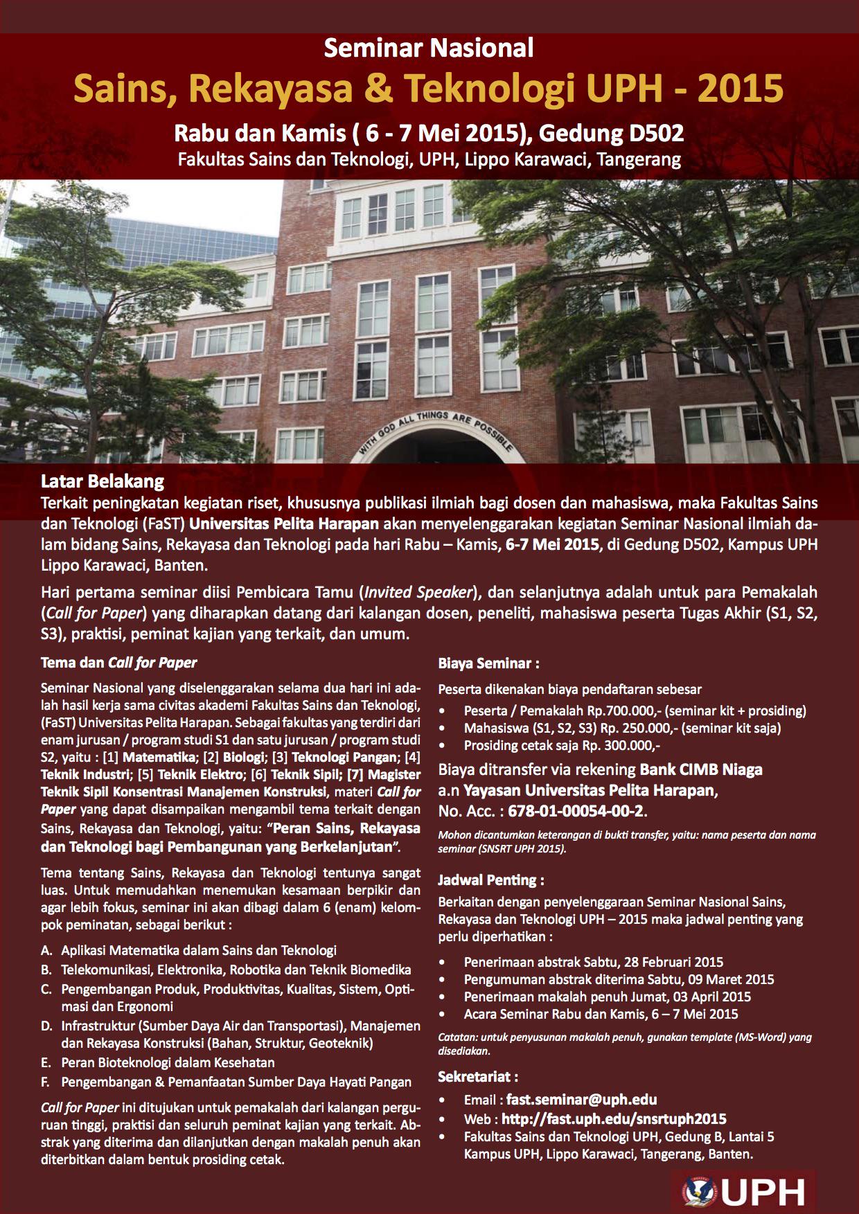 Universitas Pelita Harapan on Twitter: “Datang & Ikuti Seminar Call for Paper Sains, Rekayasa & Teknologi UPH-2015, 6-7 Mei'15. Info fast.seminar@ uph.edu http://t.co/3YkJVSvDeJ”