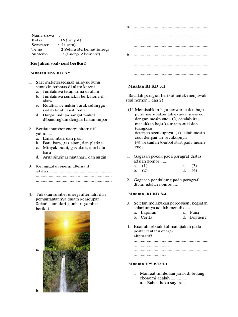 Kisi-kisi Soal Ujian Tengah Semester UTS Kelas 4 SD Buku Tematik Subtema 2 Selalu Berhemat Energi - Halaman 4 - Tribun Timur