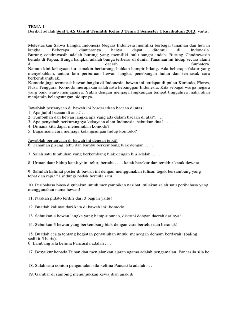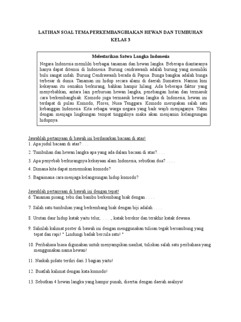 LATIHAN SOAL UAS GANJIL TEMA 1 KELAS 3 T A 2015-2016.docx - LATIHAN SOAL UAS KELAS 3 SD PEMBANGUNAN JAYA Tema I Perkembangbiakan Hewan dan Tumbuhan | Course Hero