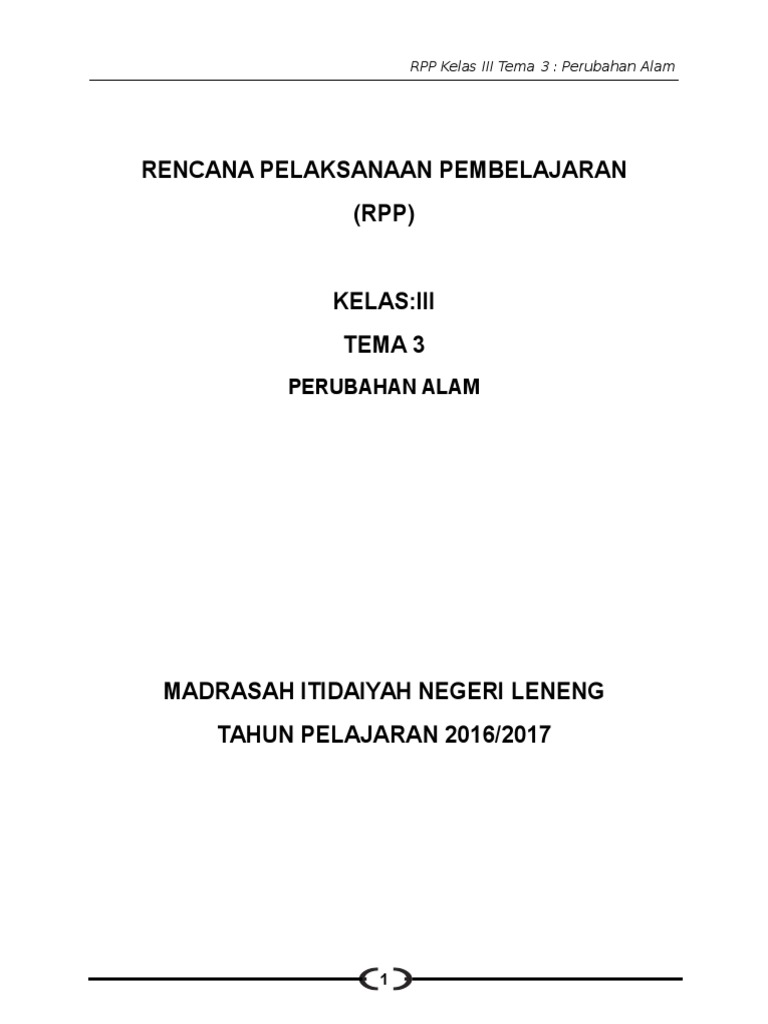 3. RPP Kelas 3 Tema 3 Perubahan Alam