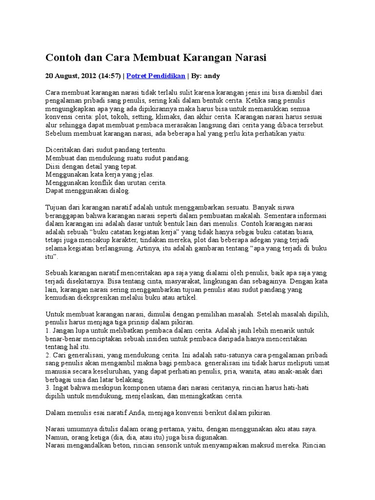 Contoh Dan Cara Membuat Karangan Narasi