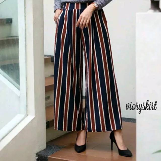 Celana Kulot Plisket Motif Salur Bahan Import Murah Celana Kulot | Azyada