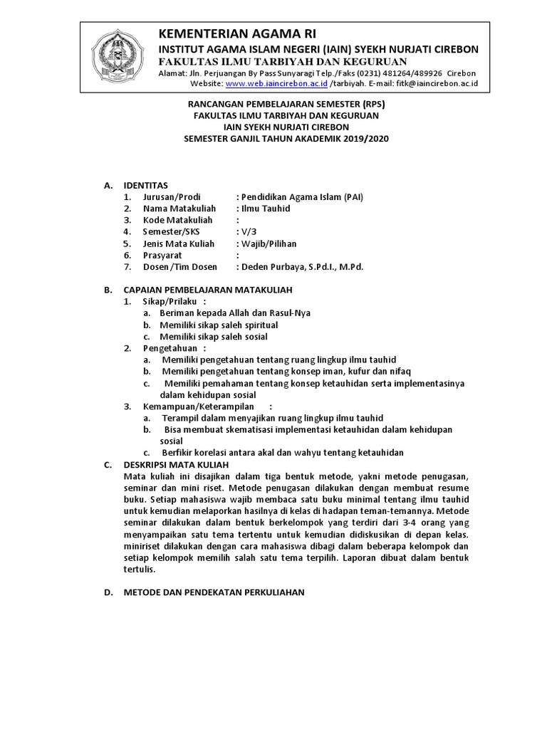 DOC) SAP MATA KULIAH ILMU TAUHID | dwi fitria - Academia.edu