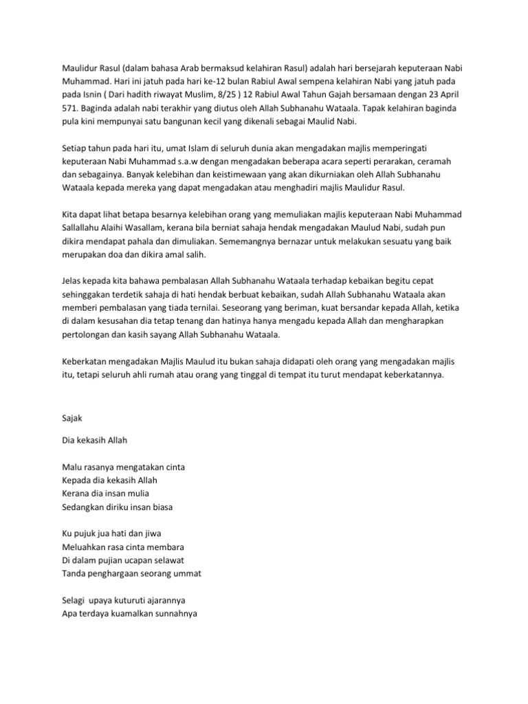 DOC) PIDATO SINGKAT PERINGATAN MAULID NABI MUHAMMAD SAW | daurulang daur - Academia.edu