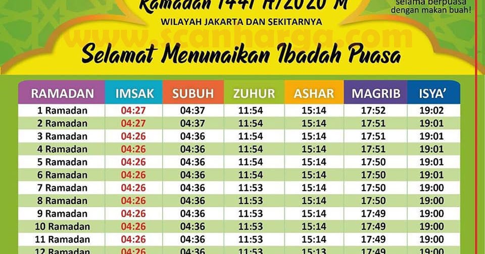 Jadwal Imsakiyah Dan Waktu Buka Puasa Ramadhan 1441 H / 2020 M | scanharga